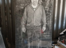 Переходим к созданию портретов на гранитной поверхности. Распечатываем ранее созданный макет, прикладываем его к плите. Под него кладём кальку, обводим ручкой основные линии портрета, убираем всю бумагу. Для проявления линий посыпаем камень тальком.